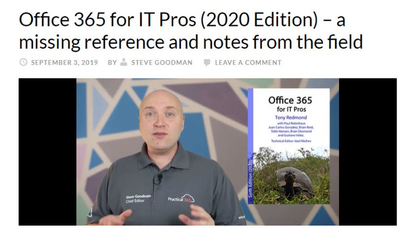 Read Steve Goodman’s review of the September 2019 update for the Office 365 for IT Pros (2020 edition) eBook on Practical365.com.