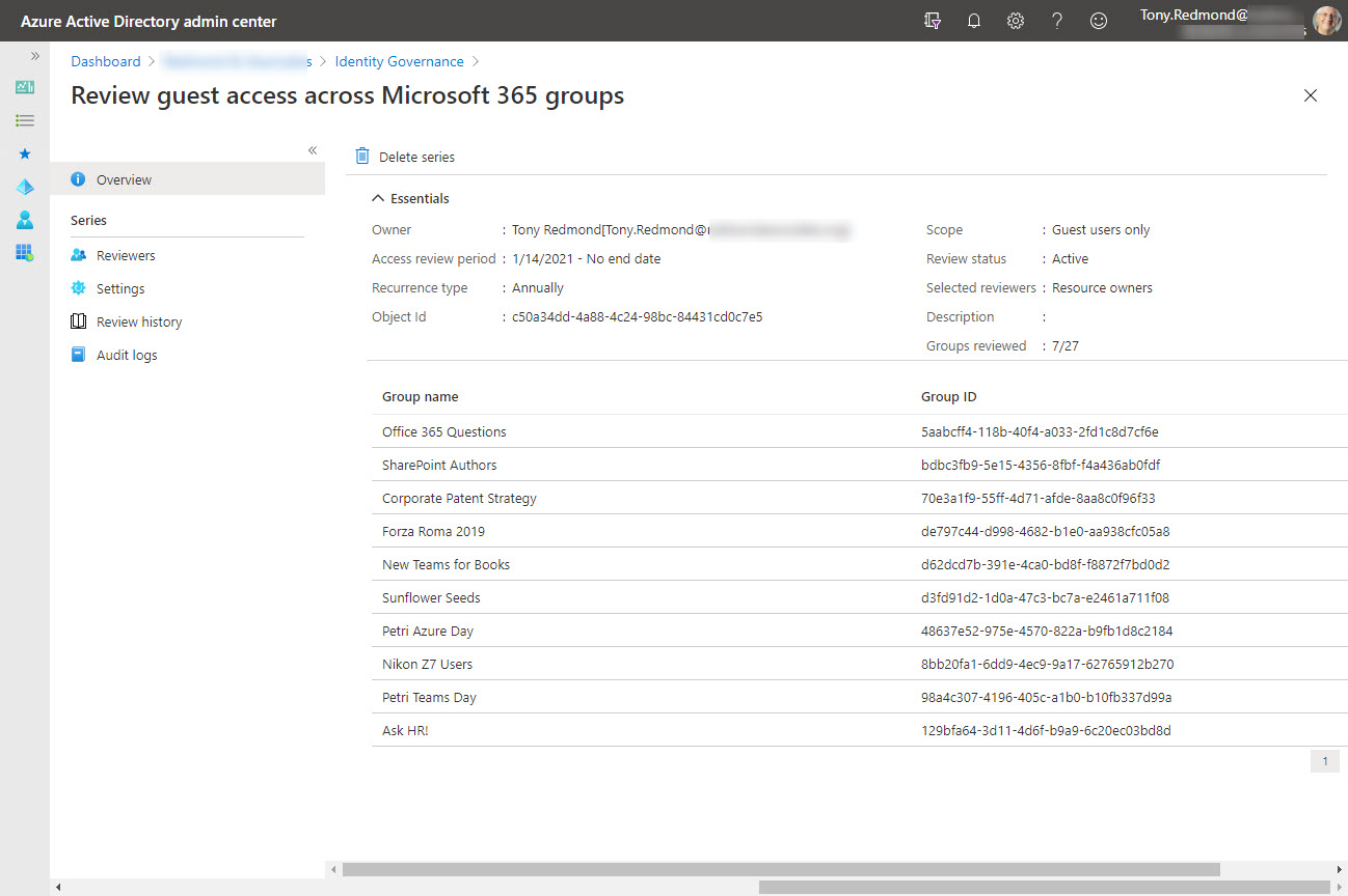 You can create an Azure AD Access Review for all guests in teams and groups in your tenant and then see what’s happening with the Graph API. In this case, we use PowerShell with the API to grab the access review data and create a report about the overall status of the review in a tenant.