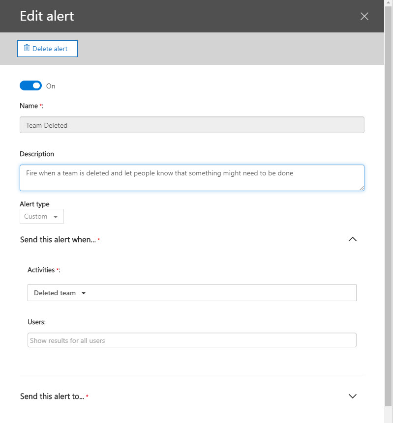 A question asked how to be notified when people delete Teams. The answer lies in the Office 365 audit log, and once we’ve found out when Teams are deleted are who deleted them, we can notifications to administrators via email or by posting to a Teams channel. The administrators can then decide if they should restore the deleted team or let it expire and be permanently deleted after 30 days.
