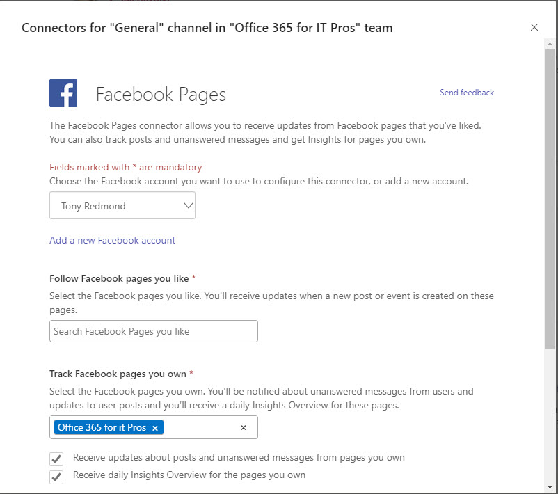 Office 365 Connectors are used to bring information from network sources into Office 365 Groups, Teams, and other apps. Microsoft retired the Facebook connector on September 4, so that’s one network source that won’t be used as a conversation starter in the future. Microsoft’s telemetry says that the Facebook connector isn’t used much, except by us (of course).