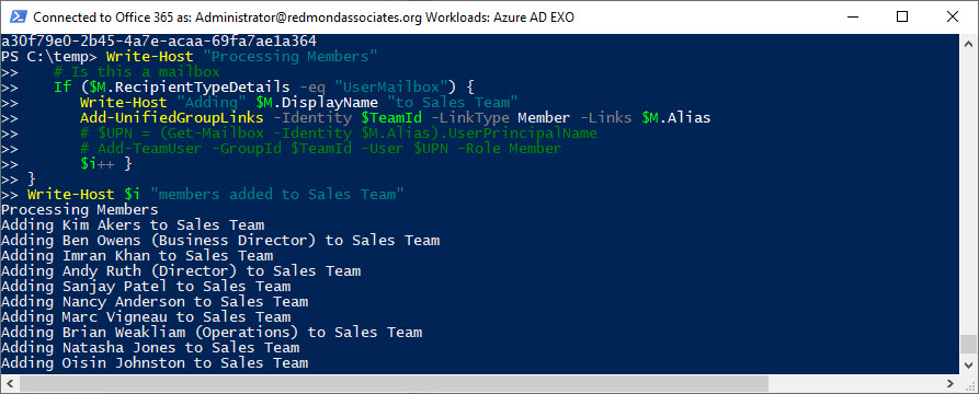 Writing code to illustrate a point sometimes falls into the trap that things don’t work so well when you scale things up. Take Graph calls for instance. Code that works well with 100 teams isn’t so good with 4,000. The solution is to keep on telling the Graph to fetch data until it’s all in the safe hands of PowerShell, and then process it.