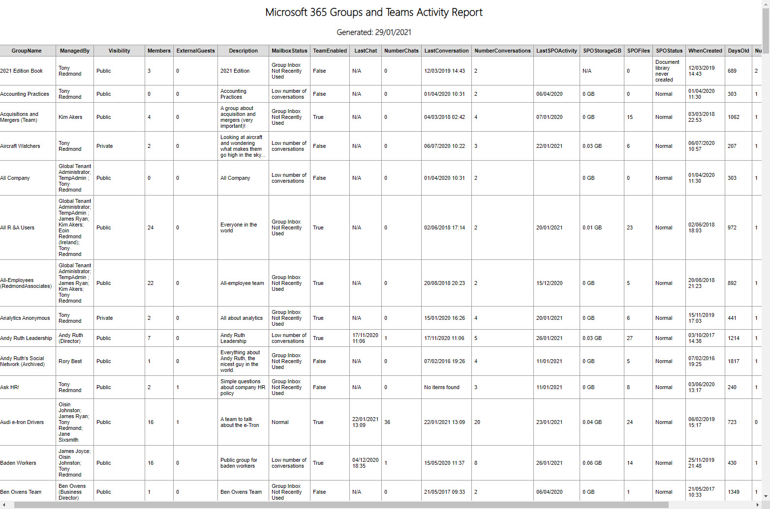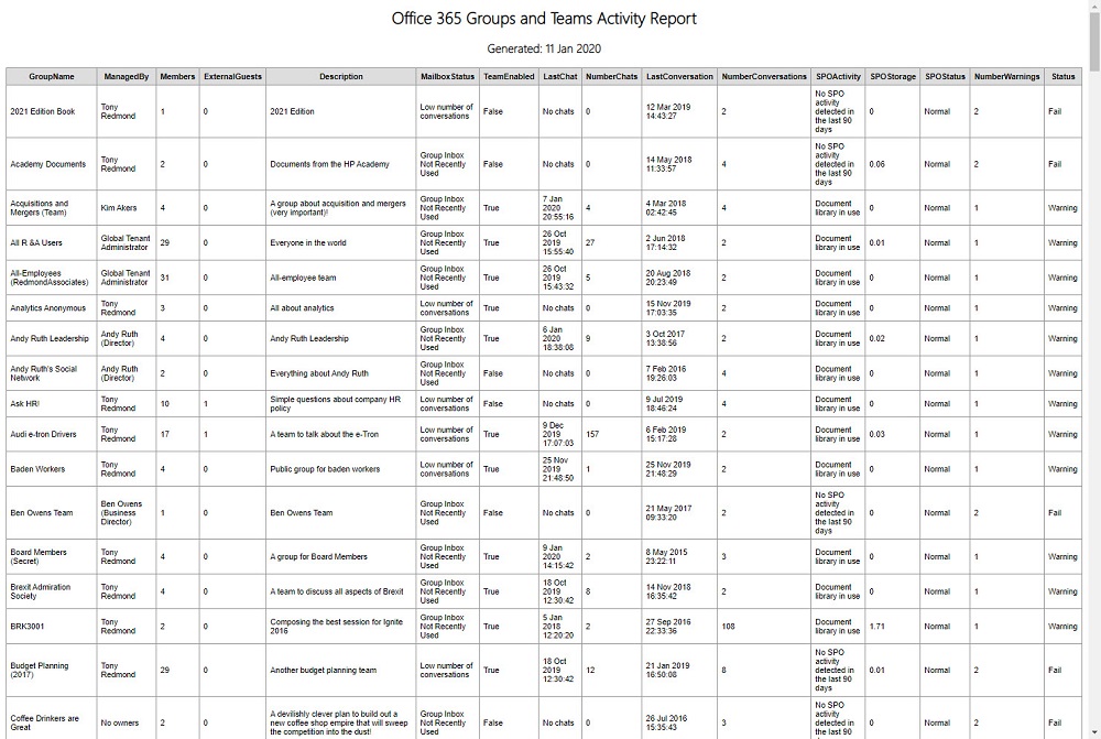 After a couple of years, it’s time to update the Office 365 Groups and Teams Activity Report script. Written in PowerShell, the script analyzes the groups in an Office 365 tenant to figure out if each group or team is in active use. Because it’s a PowerShell script, you can amend the code to your heart’s content.