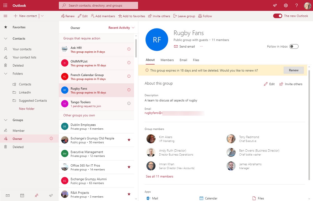 The new version of OWA boasts new abilities for owners to manage Office 365 Groups. The new UI is pretty slick and a welcome upgrade to the previous capabilities. You’ll still need to revert to PowerShell to manage some aspects of Office 365 Groups, but not as many times as you used to.