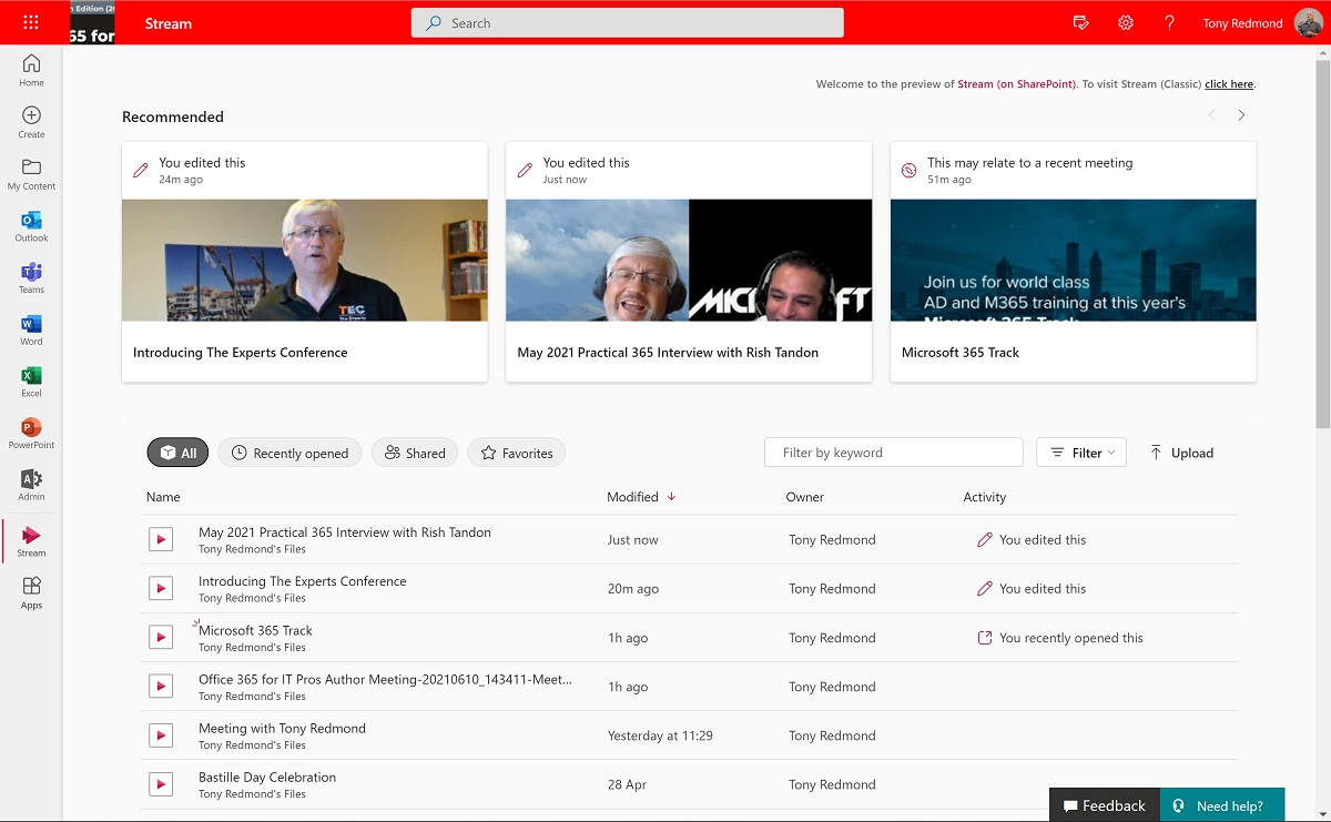 The new Stream client contains some useful new features. However, the client is still in preview and is missing other features, like the ability to manage sets of videos through Microsoft 365 groups. Even so, there’s enough available now to demonstrate the wisdom of moving to the ODSP platform for video storage and management.
