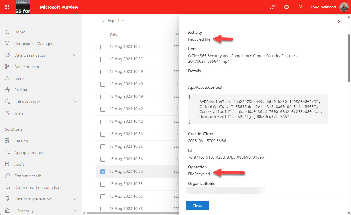 For years, I have scanned the audit log to find FileDeleted events to report deletions of SharePoint and OneDrive documents. Now, FileRecycled audit events are used instead. This wouldn’t be a problem if Microsoft had told customers, but not a trace can be found to let organizations know that the audit data they use for compliance operations has changed. I don’t know if this is the only activity name change, but given that one update has happened (and for a relatively important audit event), it’s likely that others lurk in the undergrowth.