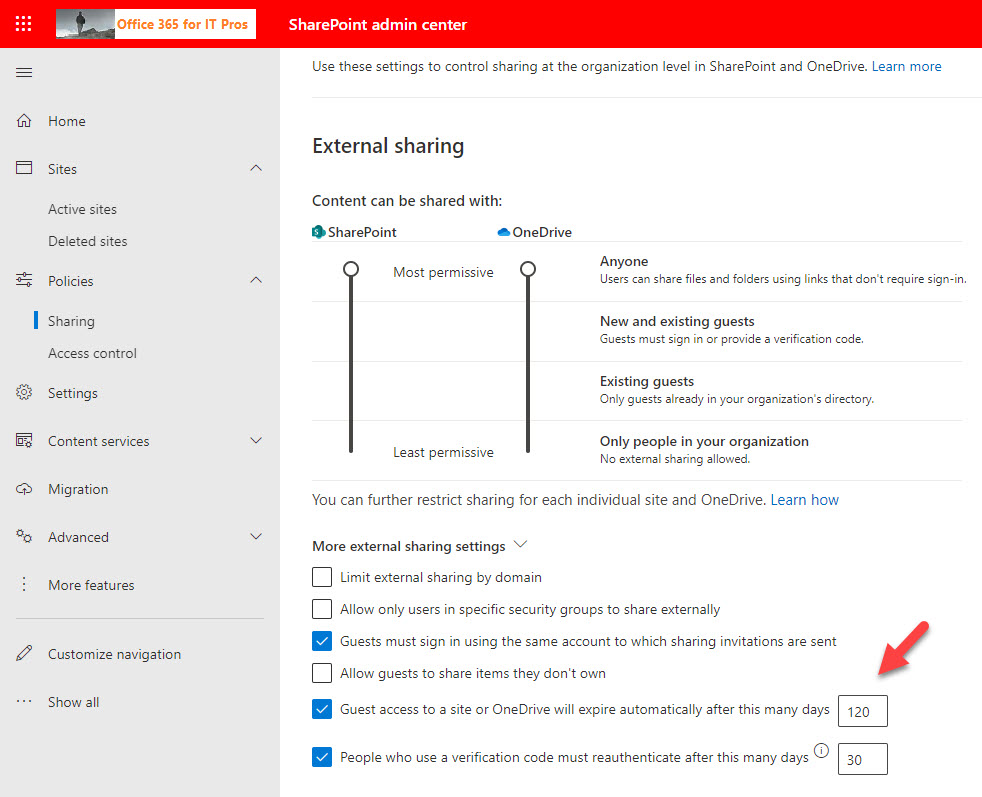 The SharePoint Online expiring access policy controls how long external users can use a sharing link. You don’t have to use this policy, but it’s a good idea to configure it. And once the policy is active, users will see notices when their sharing links approach expiration. The process to renew (extend) sharing links is quick and easy. And if you want even more protection, consider combining this policy with sensitivity labels.
