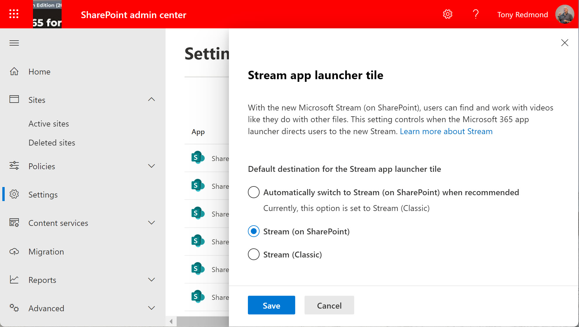 A new SharePoint Online setting allows tenants to switch the target for the Stream tile in the app launcher to the new Stream. The intention to is have users become accustomed to the features of the new GUI and the way that Stream can manage video content anywhere inside Microsoft 365. The downside is that migration from Classic Stream isn’t available yet. It’s coming, just like Christmas.