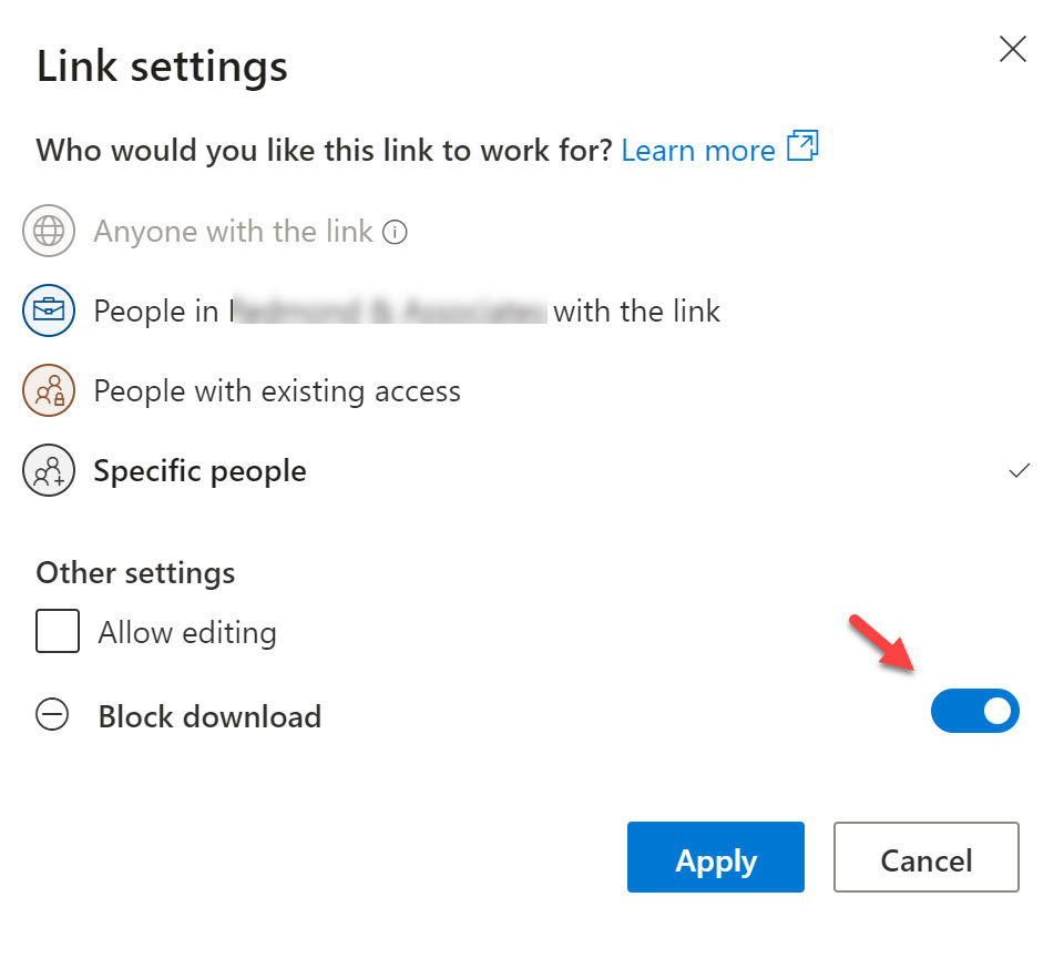 A new tweak to the sharing link dialog used by OneDrive for Business, SharePoint Online, and other Microsoft 365 workloads block downloads of video and audio files by default. This is probably what you want to happen as, unlike Office documents, when you share a video or audio file, it’s likely to be final content ready to be consumed rather than being worked on.