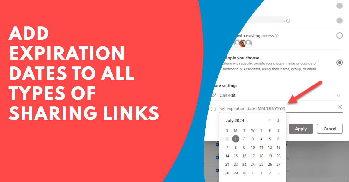 A very useful update to support sharing links expiration for all link types used by SharePoint Online and OneDrive for Business is now rolling out and should be available in all Microsoft 365 tenants soon. Until now, expiration dates were only available for anyone links. Many organizations don’t allow anyone links, so enabling the feature for company-wide and specific people links will be much appreciated.