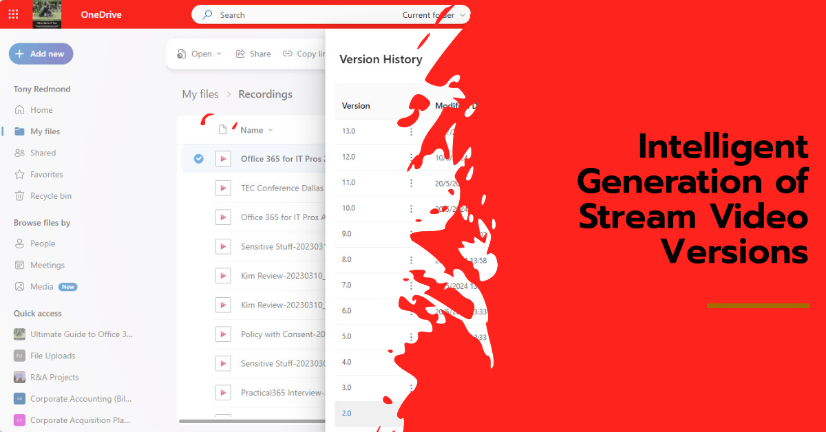In a change designed to reduce the consumption of storage quota, Stream video versions are no longer being generated for non-video updates such as changes to video metadata. Anything that alters the video content, like trimming some seconds from the start or end of a video, will create a new version. It seems like a perfectly reasonable change that might help SharePoint storage not be consumed quite so quickly.