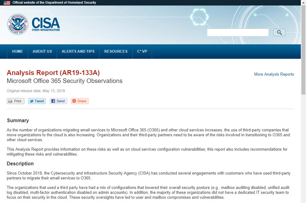 The CISA report titled “Microsoft Office 365 Security Observations” makes five recommendations to improve security of an Office 365 tenant. The recommendations are valid, but competent administrators won’t take long to implement them. In fact, the worst thing is that consultants brought in to help organizations didn’t seem to have much expertise in securing Office 365.