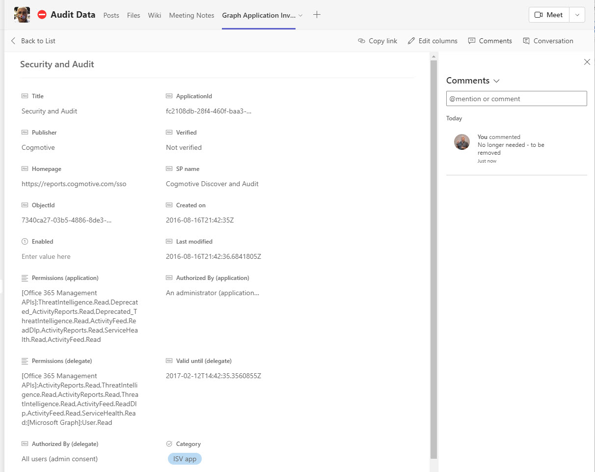 OAuth apps are a big part of the extensibility picture for Microsoft 365 tenants. As such, they are targeted by attackers as a good way to gain access to data. In a recent security blog, Microsoft recommends some steps to secure tenants. We’ve covered most of them in other articles, but it’s always good to pull the story together and rewrite a script to make it easier to report consent grants for apps.