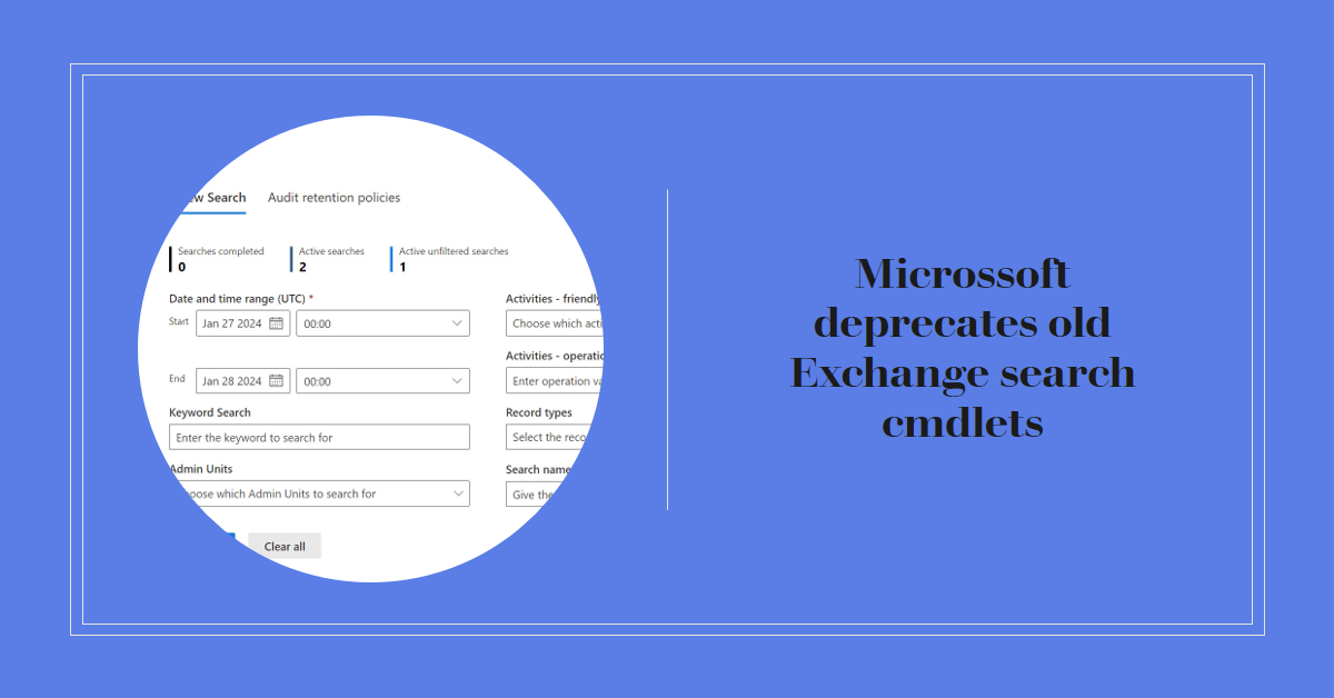 In message center notification MC703706 Microsoft announces yet another attempt to retire the Search-Mailbox cmdlet. This time it’s due to happen in March 2024. I don’t mind Microsoft removing old technology from its products, but it’s important that the old functionality is replaced by newer, better technology. And that’s not the case here. At least, not so far.